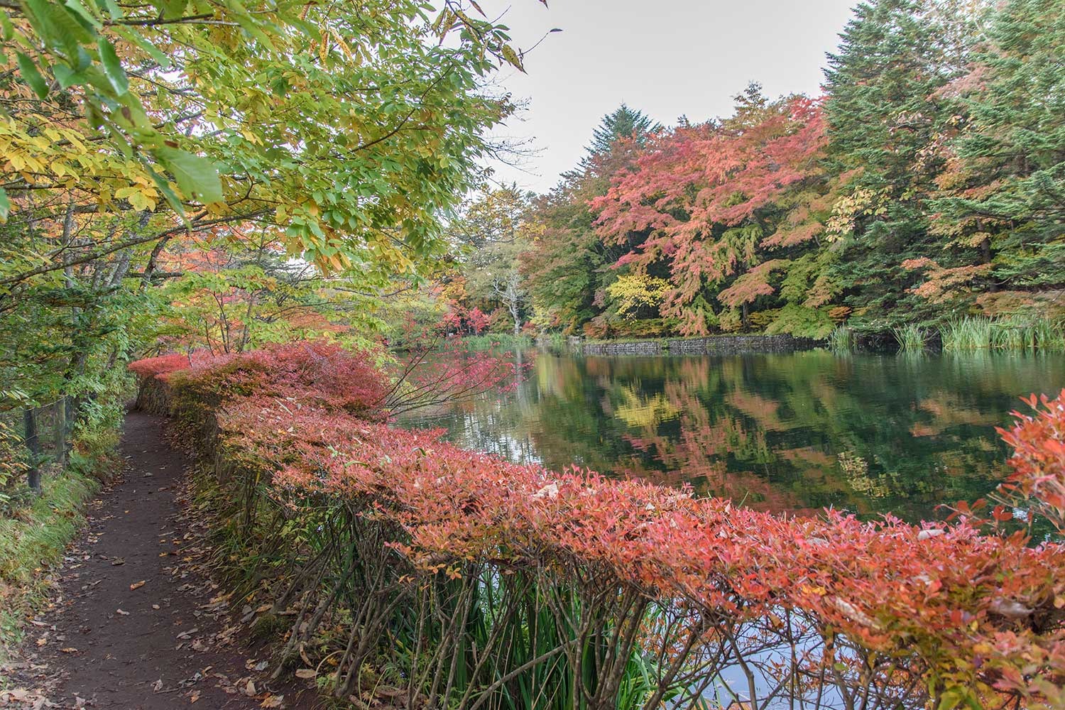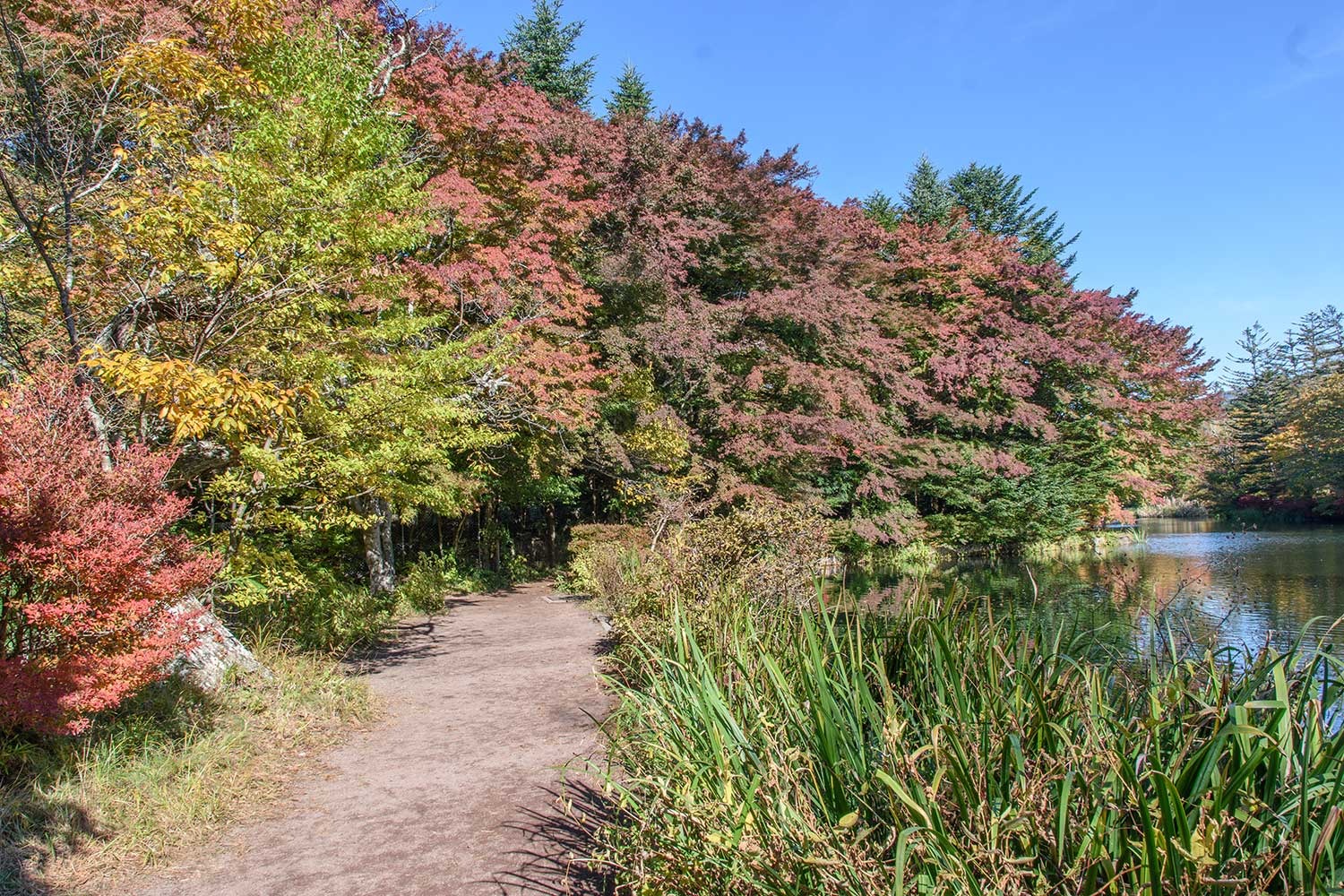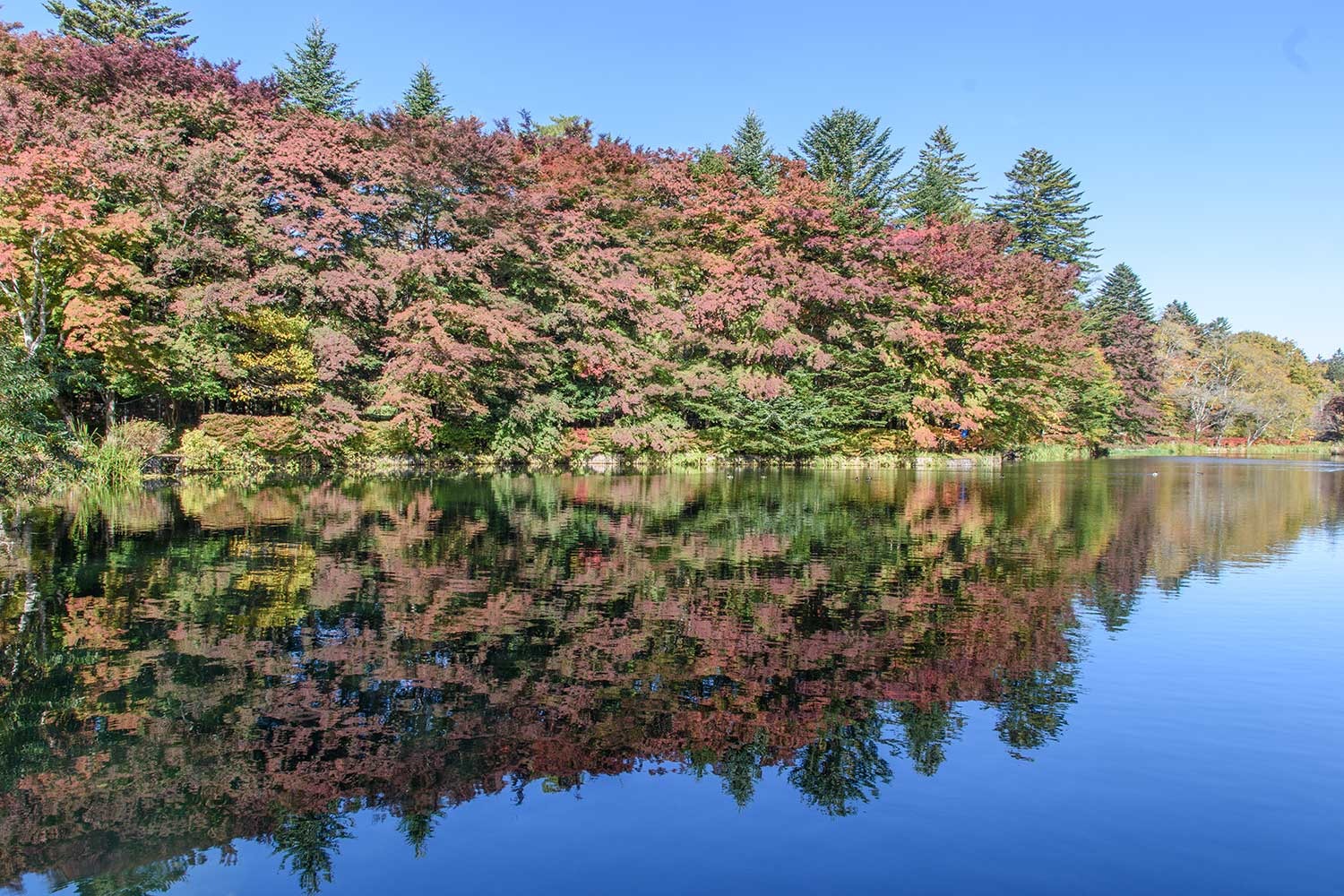 雲場池の紅葉が見ごろをむかえています。今年は10月中旬までの高い気温の影響もあって例年よりも1週間から10日ほど紅葉の進行がゆっくりです。