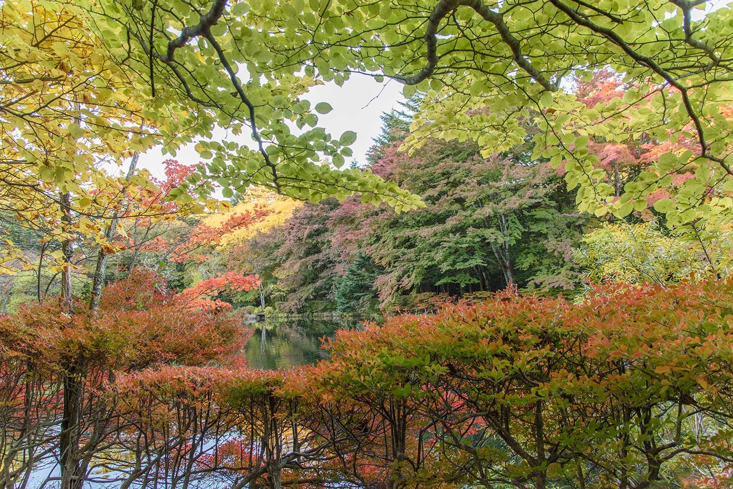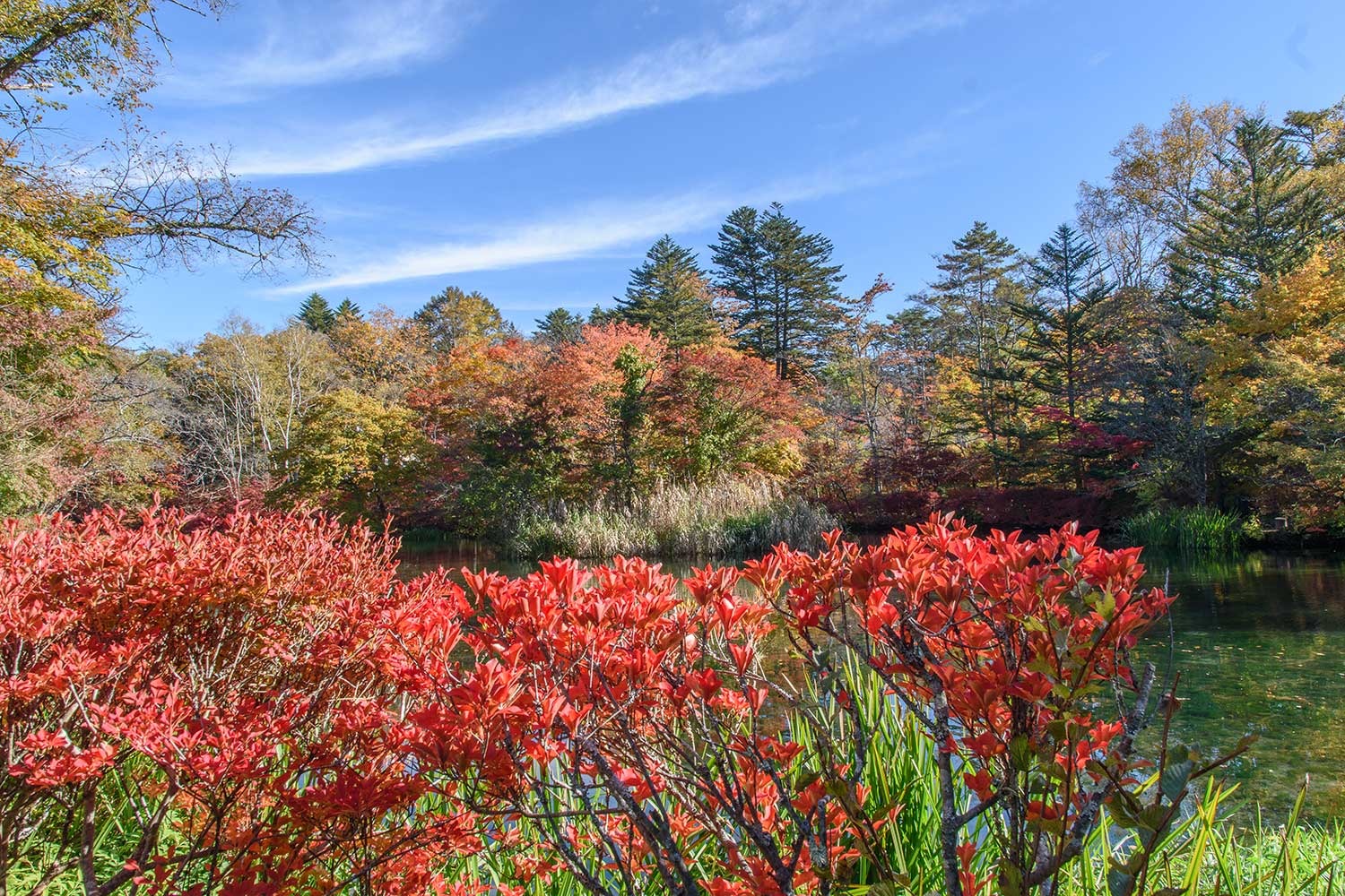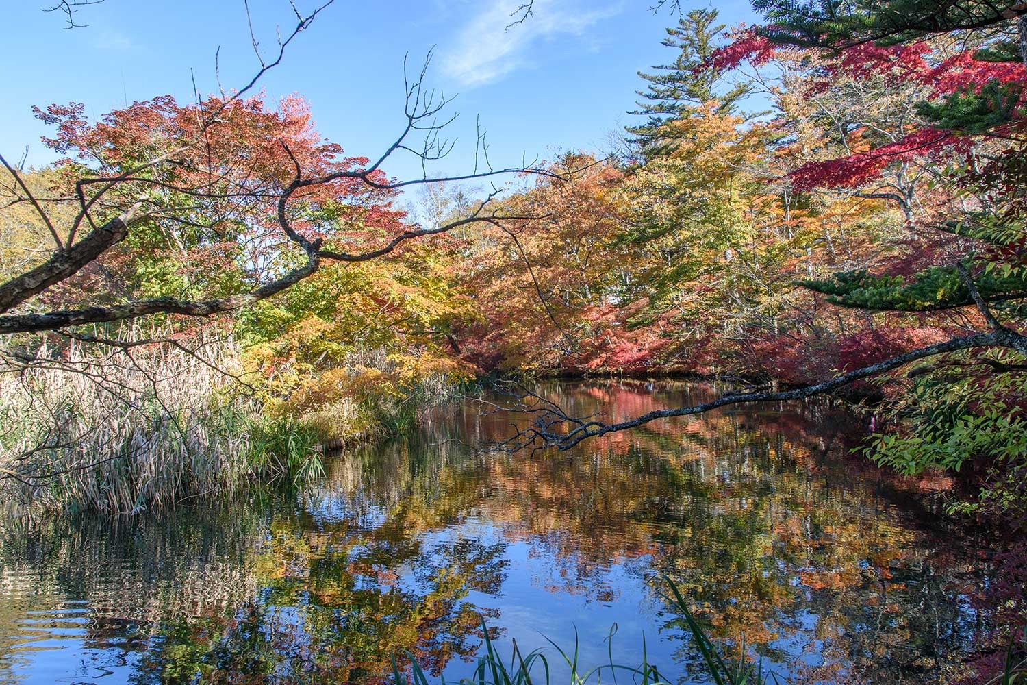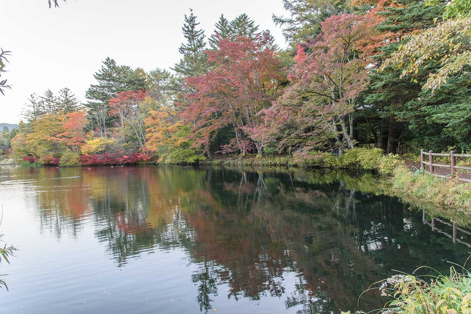 雲場池の紅葉が見ごろをむかえています。今年は10月中旬までの高い気温の影響もあって例年よりも1週間から10日ほど紅葉の進行がゆっくりです。