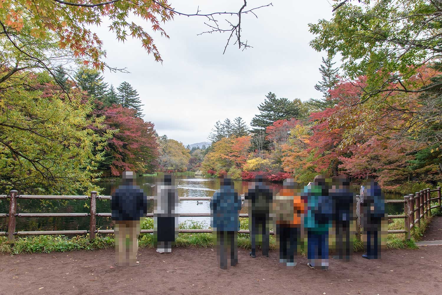 日々訪れる人の数が増えてきています。今後さら人出が増えることが予想されます。訪問予定の方は時間に余裕をもってお越しください。雲場池の遊歩道は幅が狭いので、混雑時には思うような移動が難しくなります。