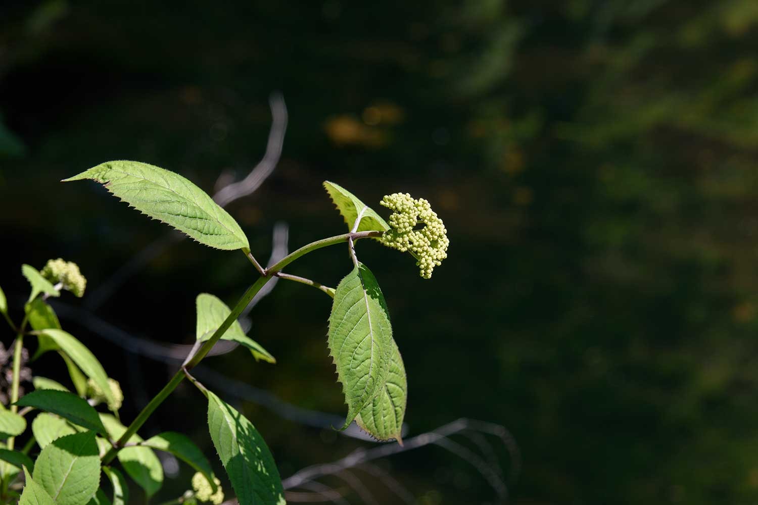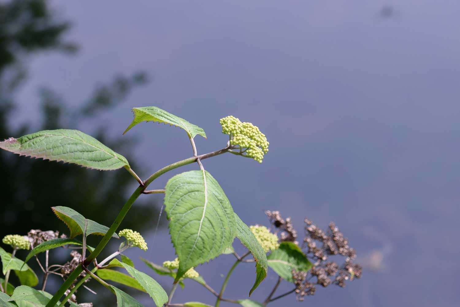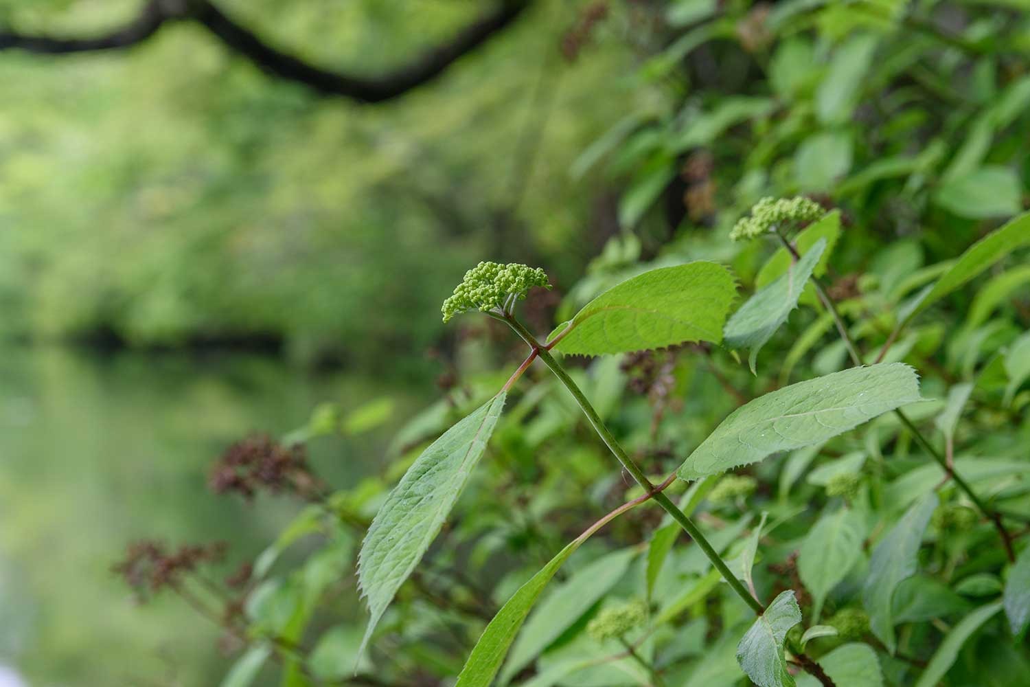下写真:池の周りの各所で見られるヤマアジサイ。つぼみが付き、ここ数日でガクも付き始めました。開花は例年下旬からで7月上旬くらいまで花期が続きます。