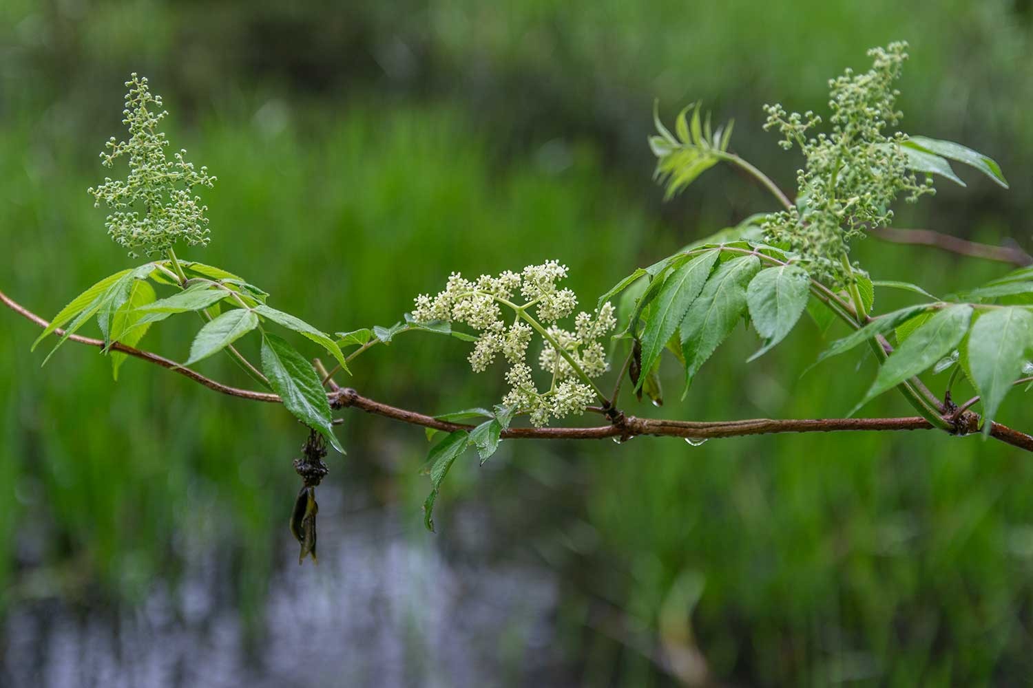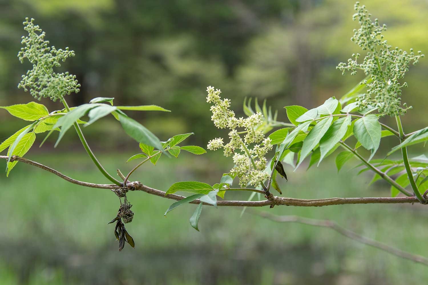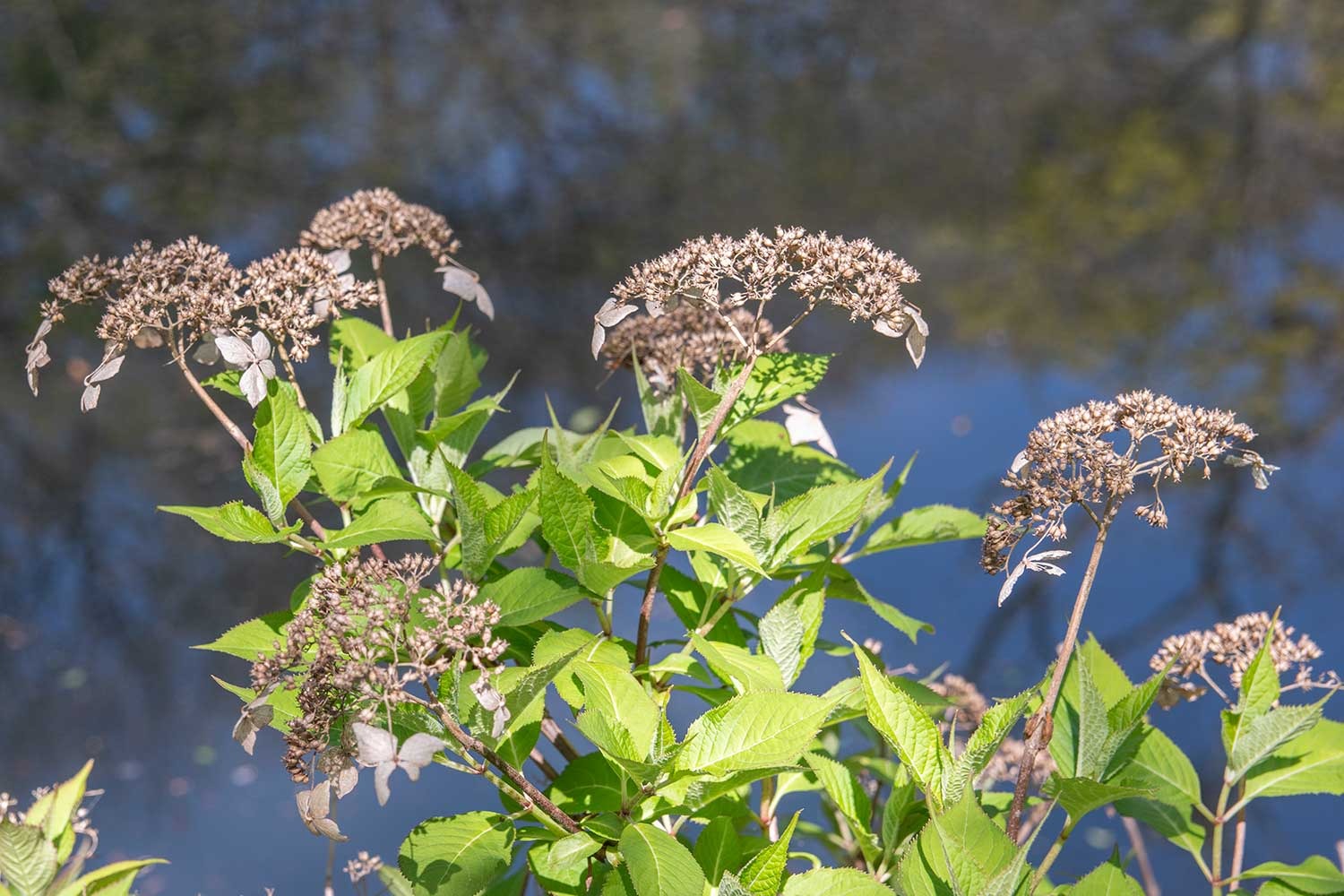 下写真:池の周りの各所で見られるヤマアジサイ。つぼみが付き、ここ数日でガクも付き始めました。開花は例年下旬からで7月上旬くらいまで花期が続きます。