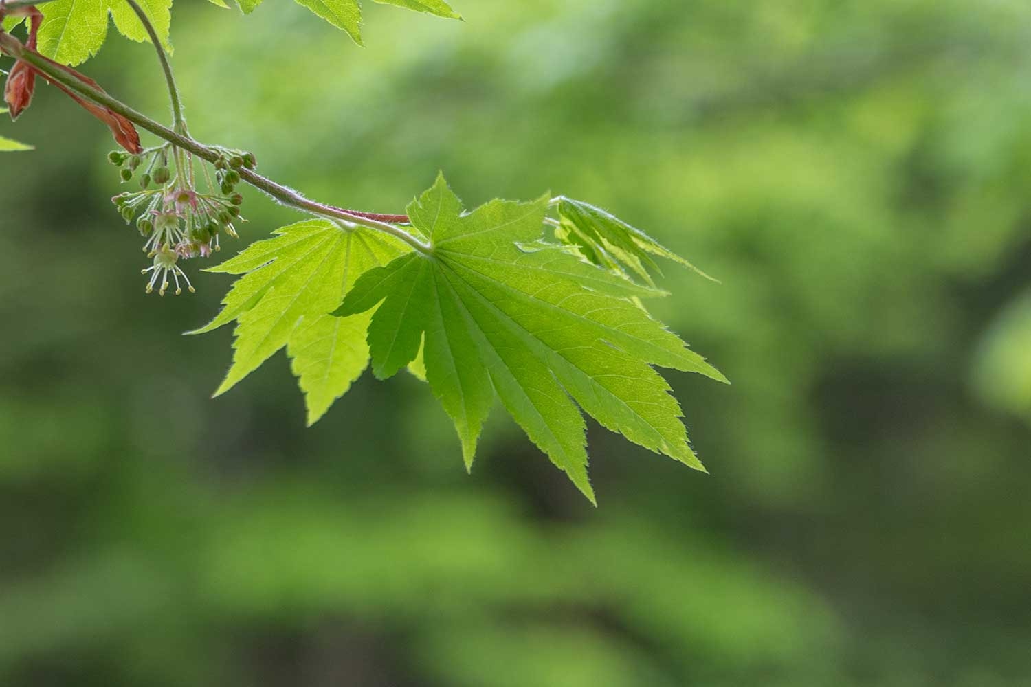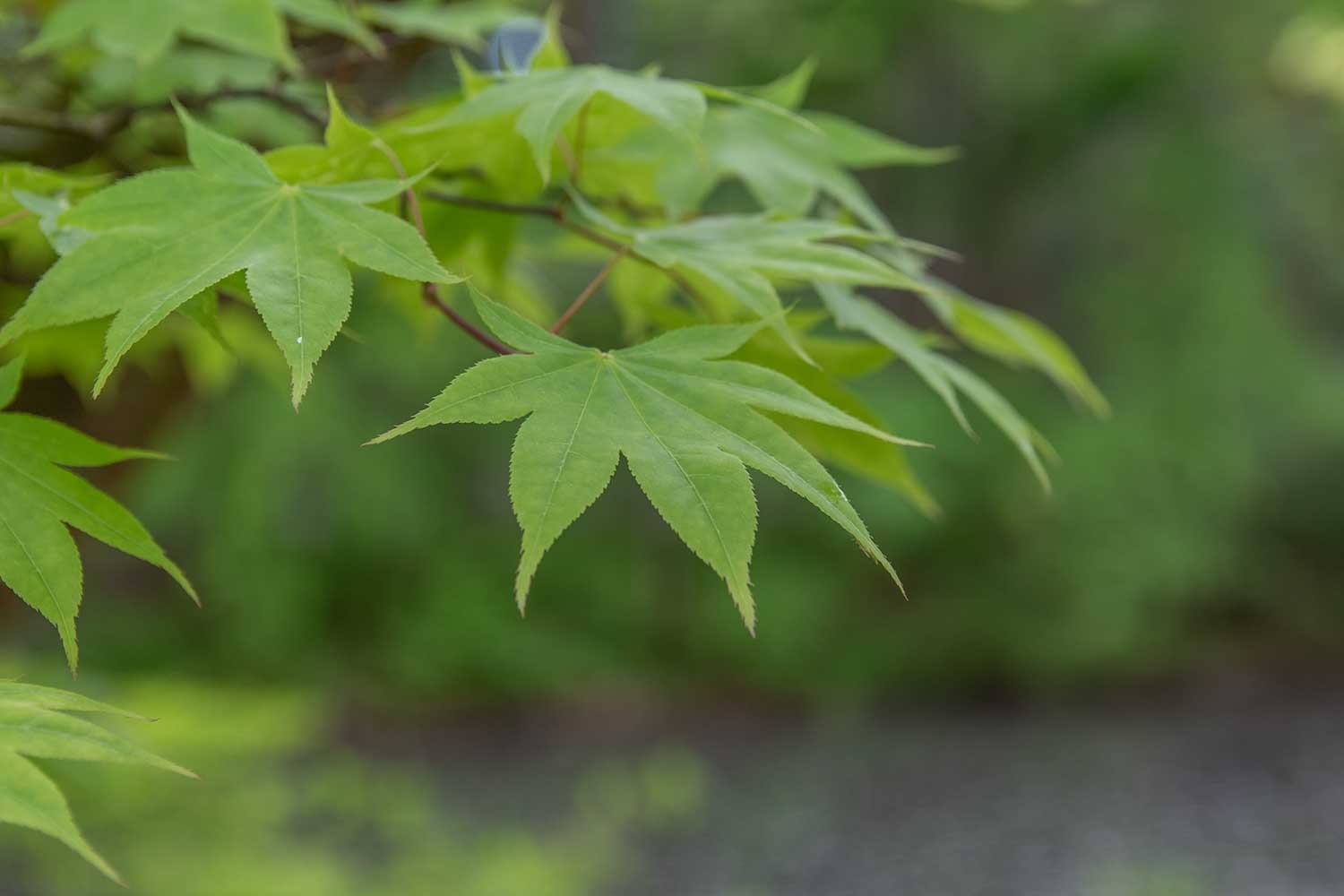 5月20日ころには新緑の最盛期と言えそうな、淡く美しい緑となり、以降少しづつ新緑の色が深みをまして、6月に入る頃には黄色味がなくなって、青モミジの季節へと変わりました。