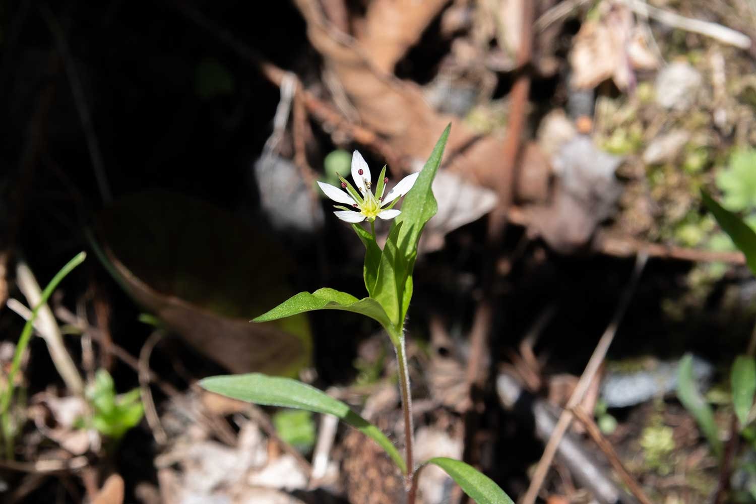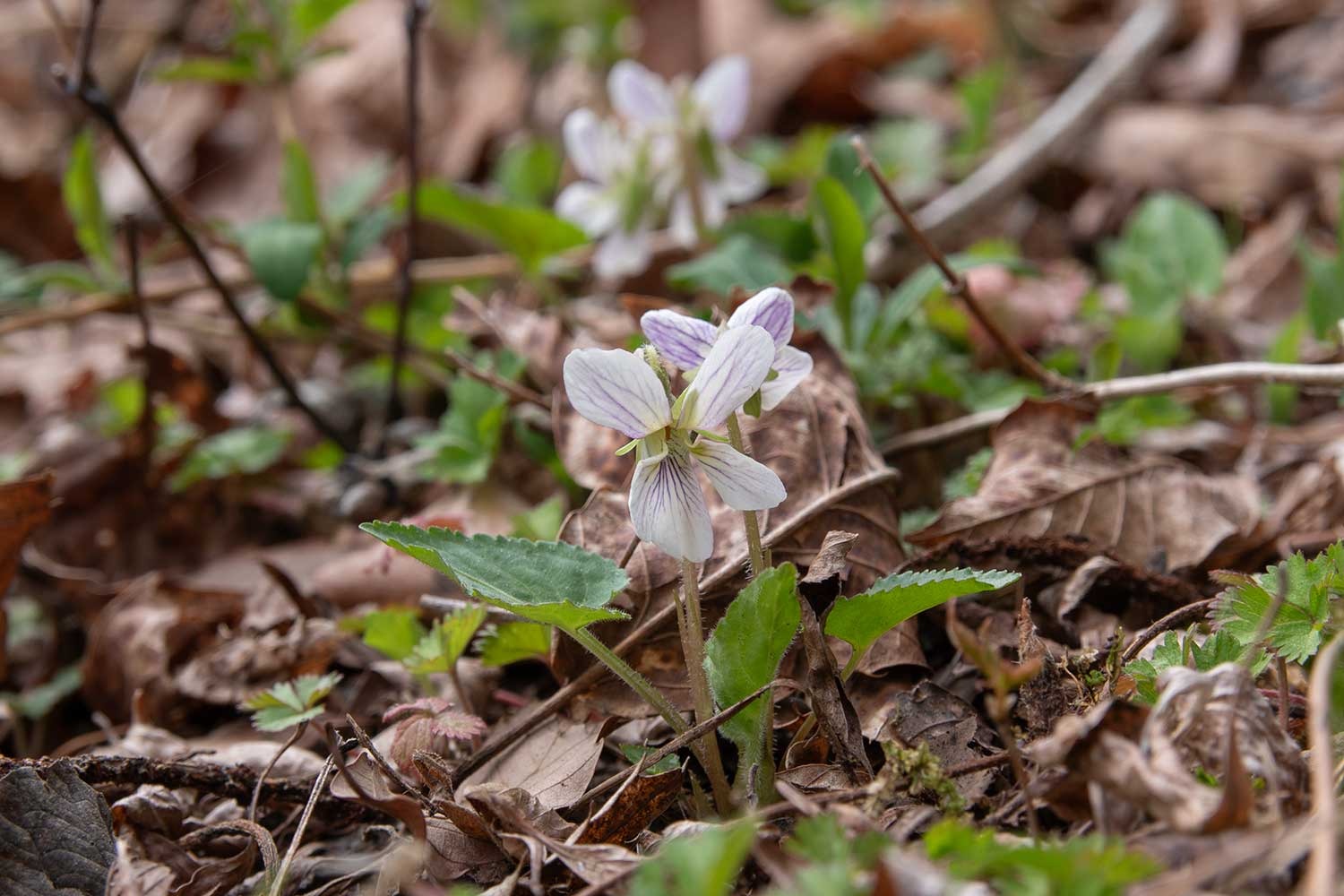満開をむかえていたズミの花びらが散って、場所によって地面が白くなりました。見ごろ終盤です。