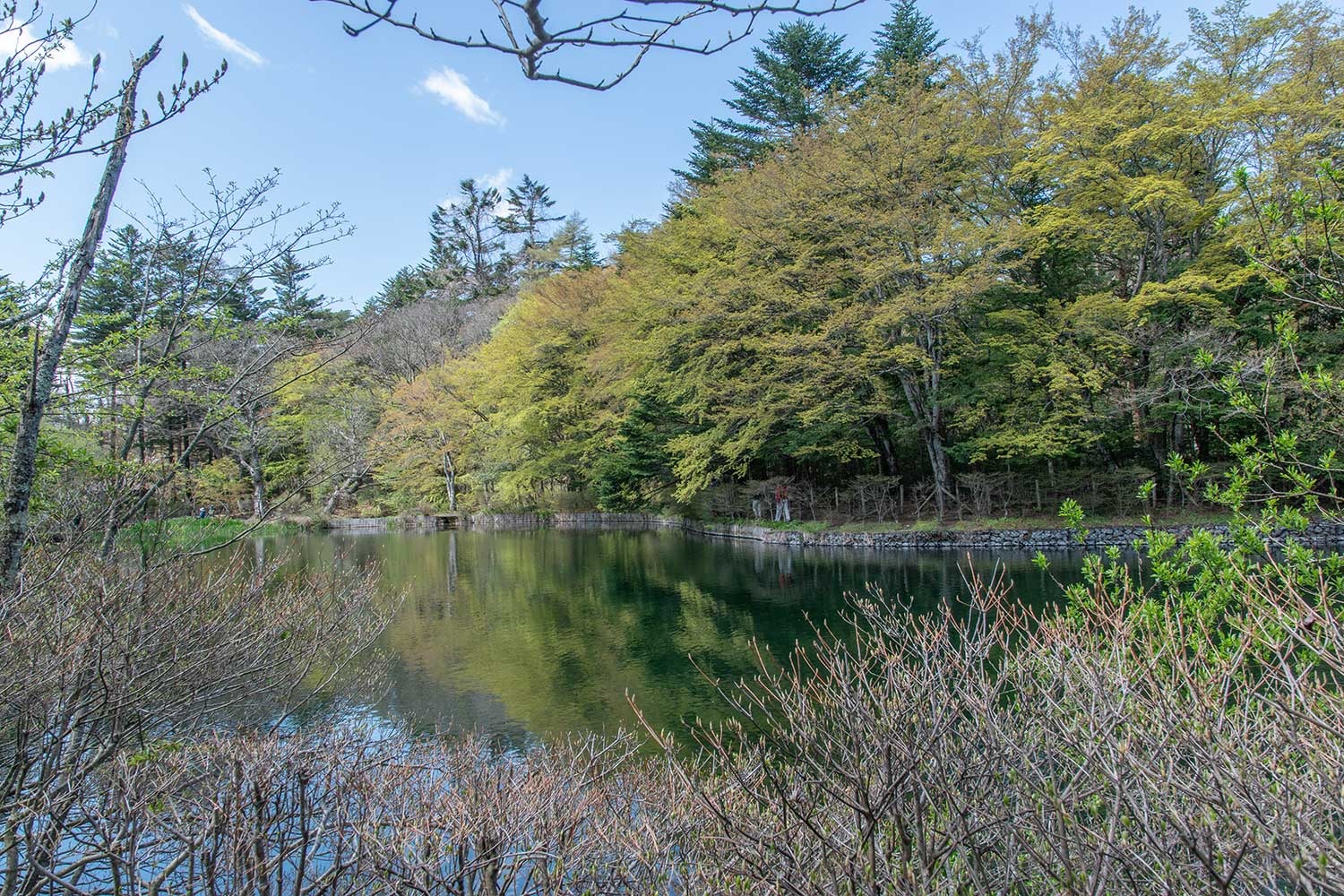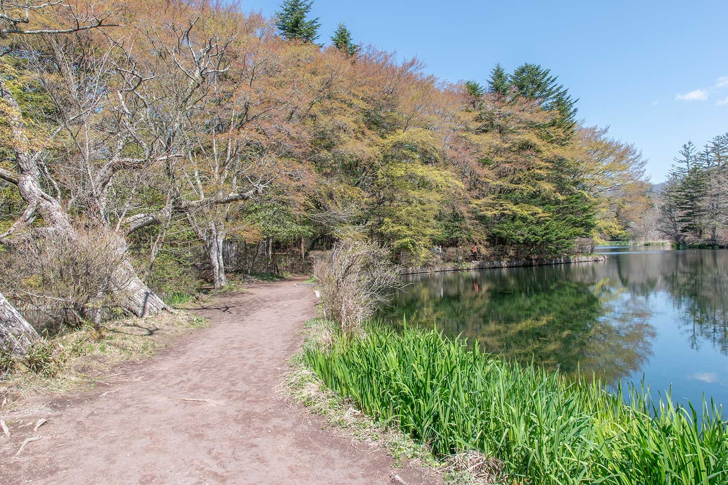 緑がとてもやわらかで、景色全体がとてもやさしい色合いに染まります(雲場池ではイロハモミジやドウダンツツジが多い)。